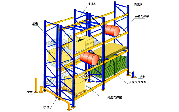 1.通常货物通过托盘、仓储笼等单元集装设备整装后存入货架保管。每单元载重一般在4000kg以内,每层通常放两个单元。
