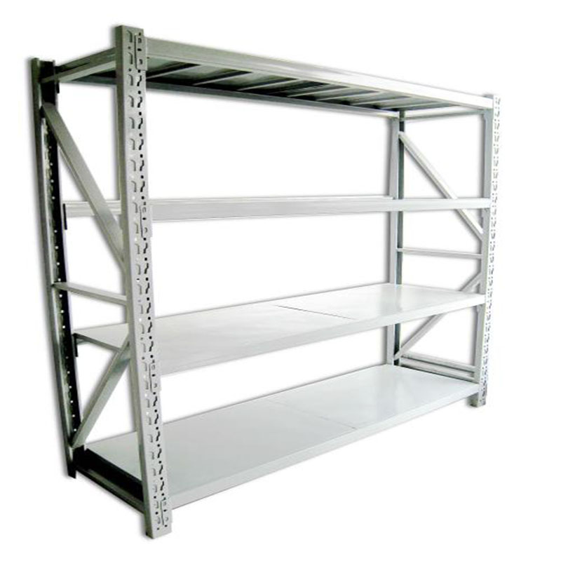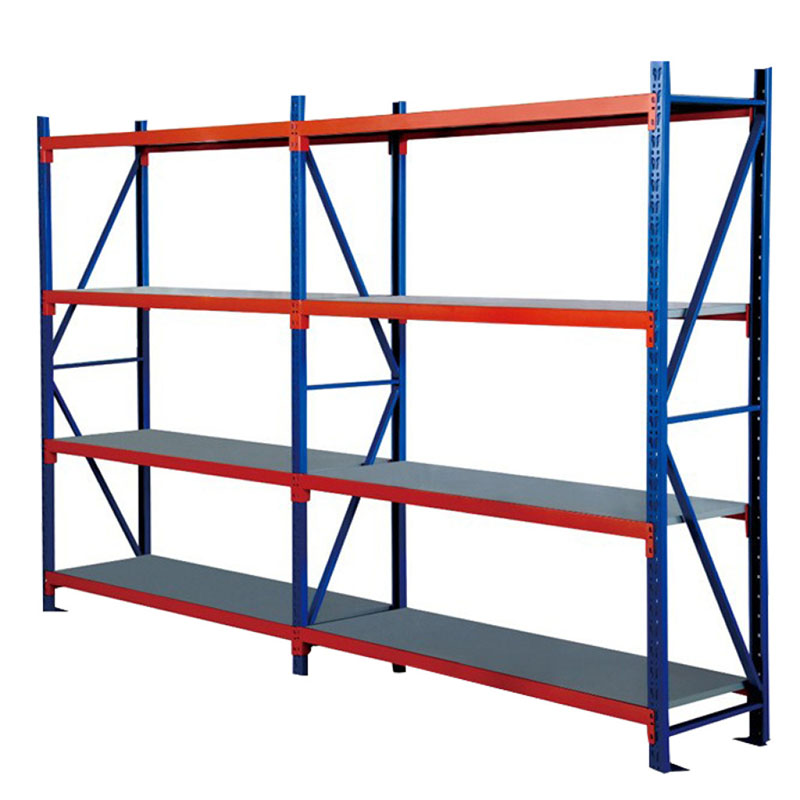 标准4层铁层板货架现货、250公斤/层,300kg/层货物存放架、铁制仓储货架生产商批发零售货架。