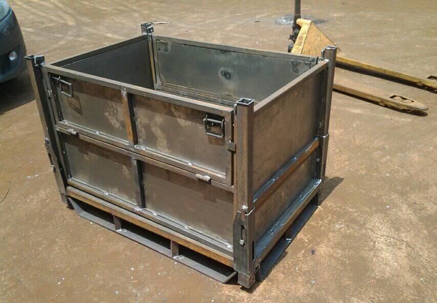 金属周转箱特点:具有一定的防潮、耐腐蚀、耐酸碱、耐用、可堆叠、有光泽等特点。